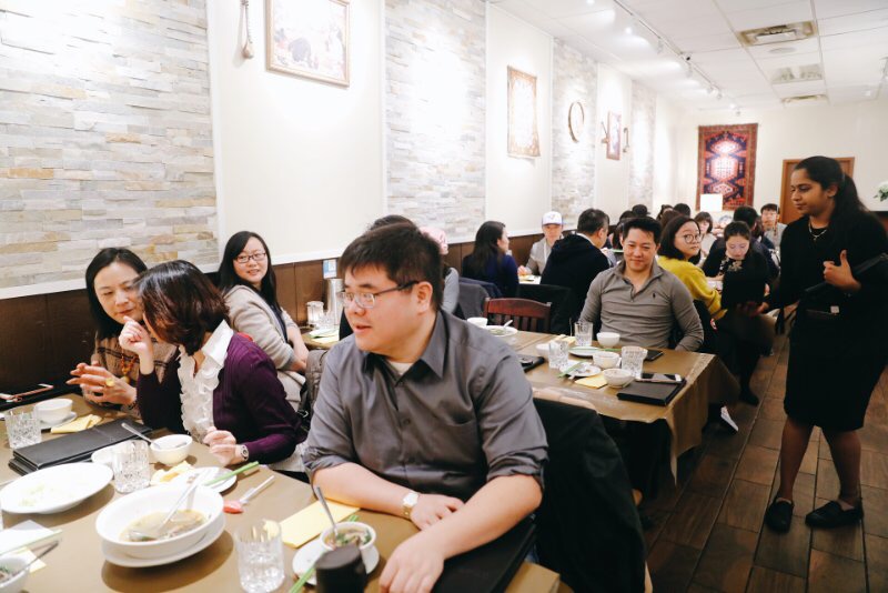 第一个活动是贝加圈圈美食群聚餐,包场了正宗维吾尔餐厅。 好吃的餐厅的共同特点,就是有一个对美食特别执著的老板。老板是我们美食群的老朋友了,这次给我们来了一段精彩的演讲,先把大家对美食的热情大大的肯定了一下。然后说起了他自己的亲身经历。 最后来了一句,不爱美食的人不好玩,要享受当下,及时行乐。 老板的谈话,更加激发了大家对吃的热情。我们吃了维吾尔族抓饭和羊腿,羊肉串,大盘鸡,拉条子,羊杂汤,烤包子。个人认为羊肉串,比丝绸之路的好吃,羊杂汤更是没有敌手,一定是全多伦多第一名。羊腰, 羊肉包子也是特色,大盘鸡配拉条子,非常入味,份量很给力,到后来都吃不完打包回家。正宗维吾尔餐厅就是这么一个能吃到简单却美味食物的地方。